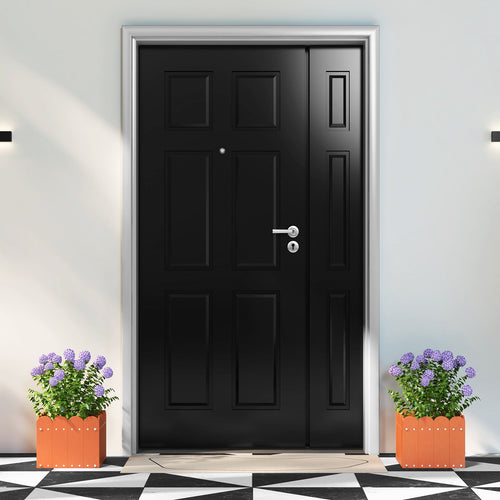 2 in 1 Garden Arbor with 2 Side Planters and 8 Ground Stakes-Black